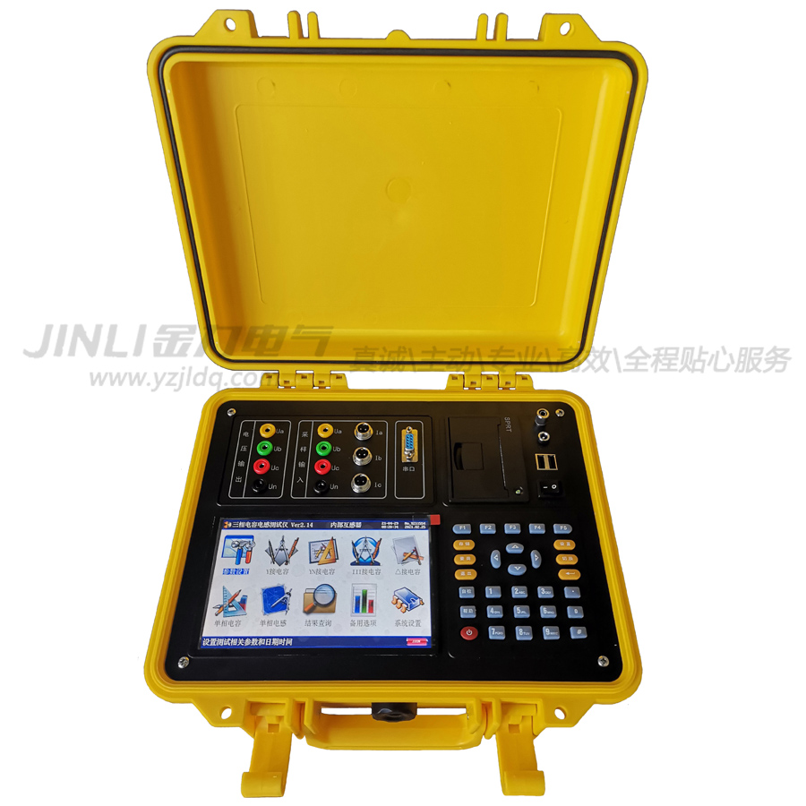 針對現(xiàn)場的實際情況,我公司適時研發(fā)出一種新型測試方法的JL4003全自動電容電感測試儀,該儀器內(nèi)部數(shù)字合成三相交流測試源,可以在不拆線的狀態(tài)下,直接測量成組并聯(lián)電容器的單相電容或各種組合連接類型的三相電容器,同時也能夠測量各種電抗器的電感,接線簡單,測試、記錄方便,大大提高了工作效率。它以大屏幕彩色液晶作為顯示窗口,菜單操作并配有漢字提示,集多參量于一屏的顯示界面,人機對話界面友好,使用簡便、快捷,是各級電力用戶的SX產(chǎn)品。